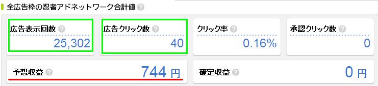 私のこのブログで忍者AdMaxに登録したとき、ほぼ1カ月間「
